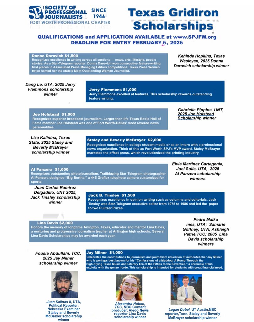 Who may enter: print/online and broadcast journalists in Texas and Oklahoma — SPJ Region 8 — or whose work is used by news organizations in those states. Stories that address an incident or topic in Texas or Oklahoma are eligible regardless of the reporter’s location or news organization. An entrant does not have to be a member of SPJ.